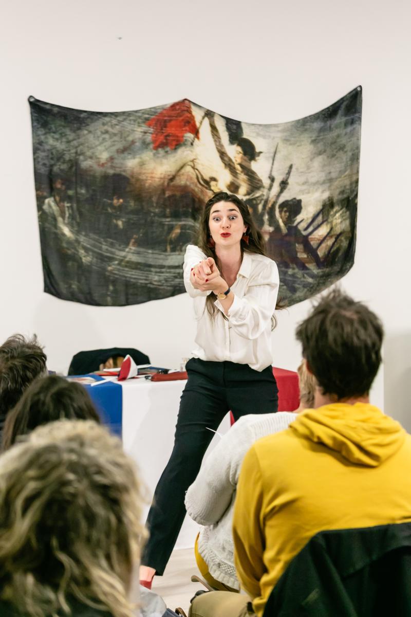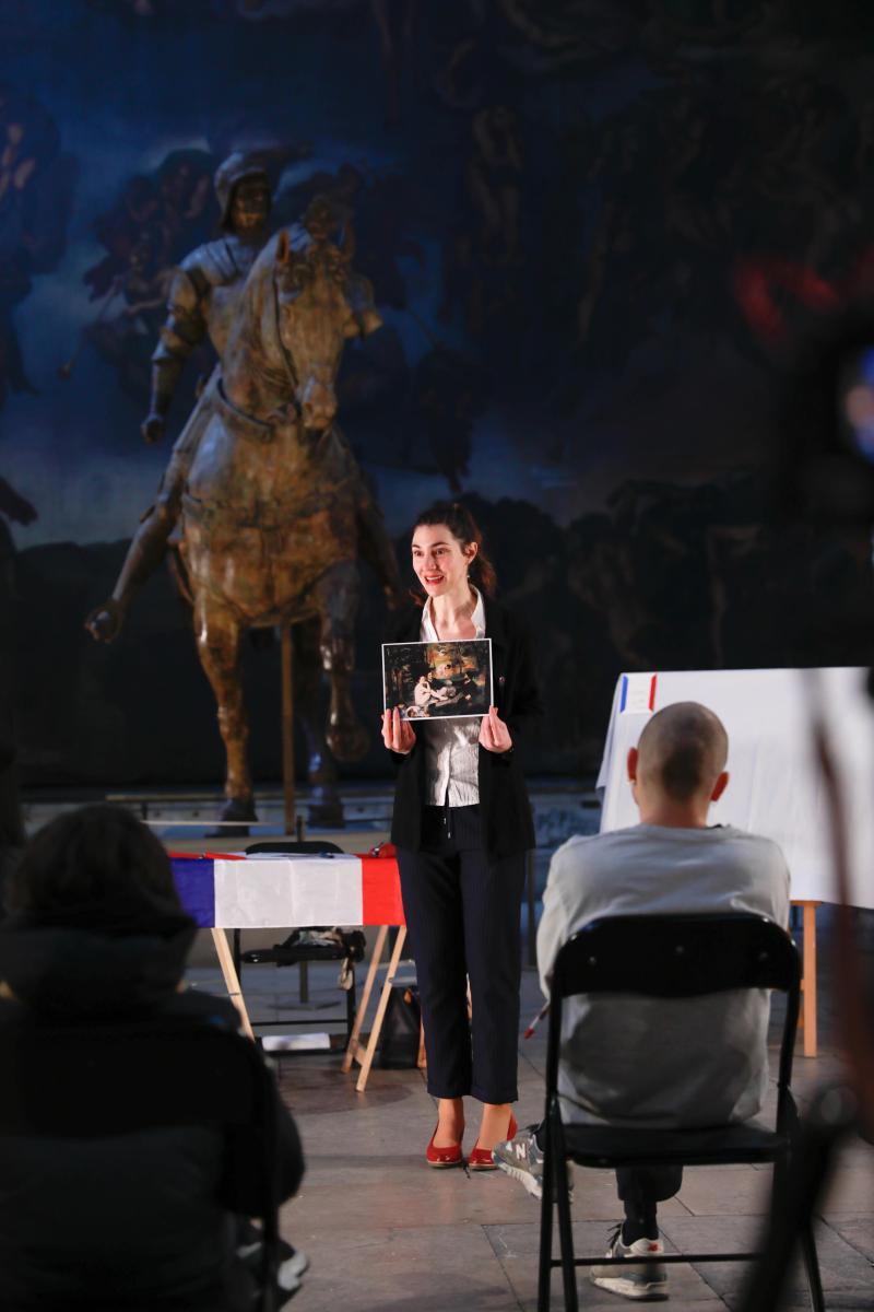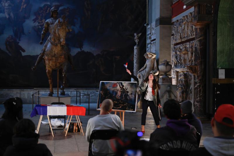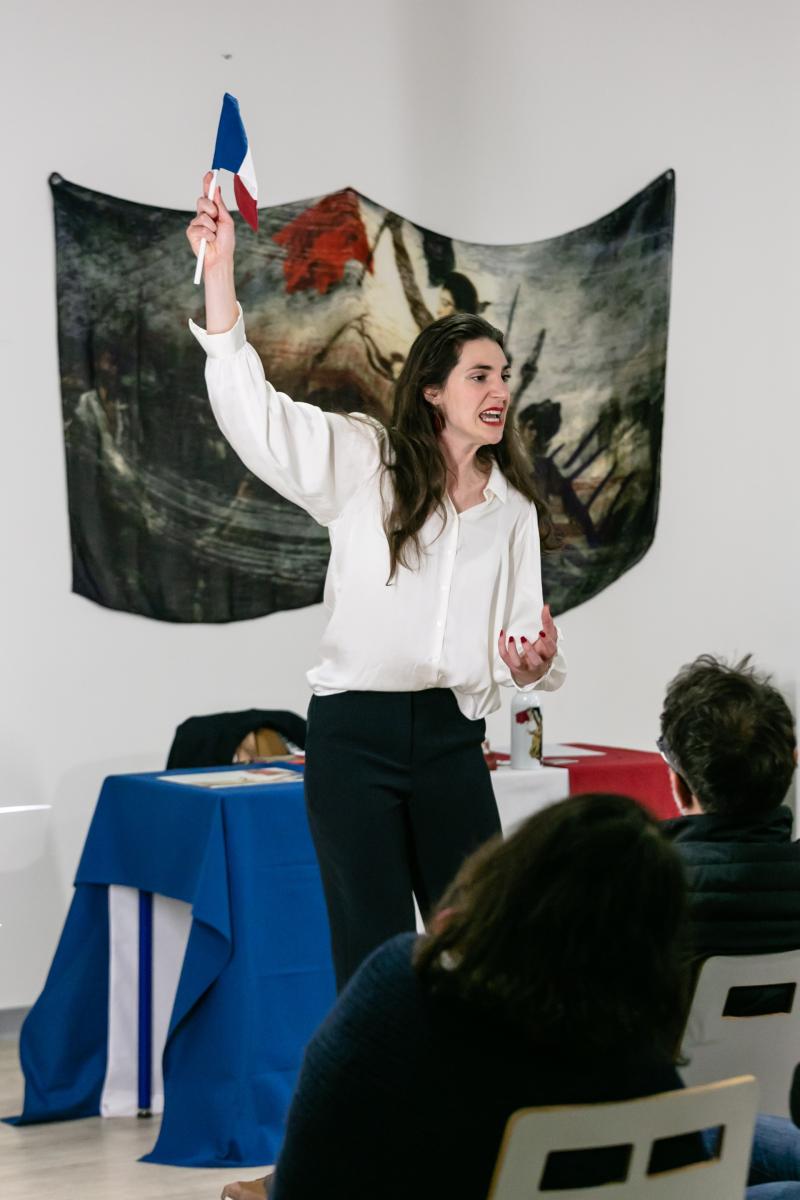 Marianne Martin a une mission : fabriquer le corps national français de demain. Et aujourd’hui, pour que vous deveniez pleinement Français·e, Marianne Martin vous donne votre premier cours d’appropriation culturelle. Adepte des pédagogies nouvelles, elle va donner l’exemple et passer devant vous l’épreuve redoutée. Le sujet est tiré. Il va lui falloir démontrer qu’elle s’est appropriée la valeur phare de la République : la Liberté !